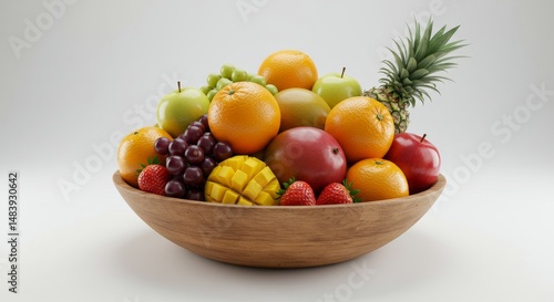 Vibrant Fruit Bowl Studio Shot - A colorful assortment of fresh fruits in a wooden bowl, symbolizing health, abundance, freshness, vitality, and celebration. Perfect for websites or festive occasions