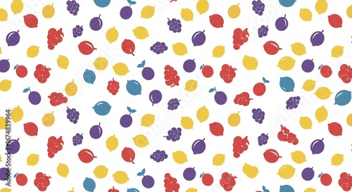 Vibrant fruit pattern joyfully scatters across white background. AI Generated
