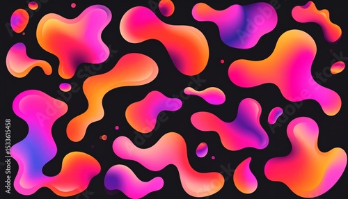 Vibrant funky liquid shapes with colorful gradients, pink, orange and red bubbly blobs