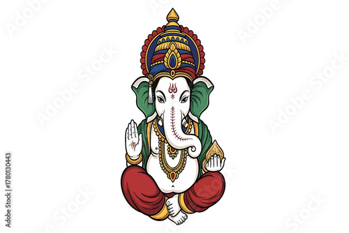 Vibrant Ganesha deity blessing abundance and wisdom in traditional Indian artwork style