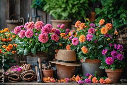 Vibrant garden flowers in pots, gardening concept. Ideal for garden centers or horticulture guides.