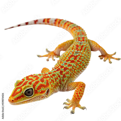 Vibrant Gecko With Orange Green Spots isolated on a transparent background reptile