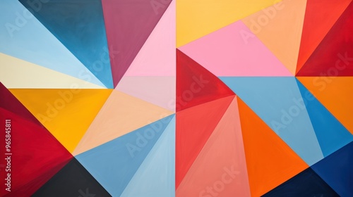 Vibrant Geometric Abstract Art. Colorful Triangles and Polygons on Canvas