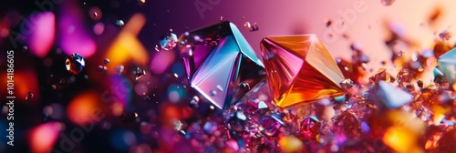 Vibrant geometric crystal shapes float in a field of colorful light, symbolizing innovation, creativity, energy, and the beauty of abstract design.