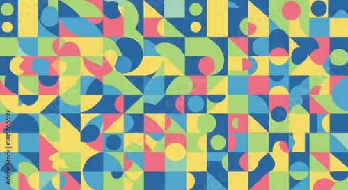 Vibrant Geometric Pattern with Bright Colors and Modern Shapes