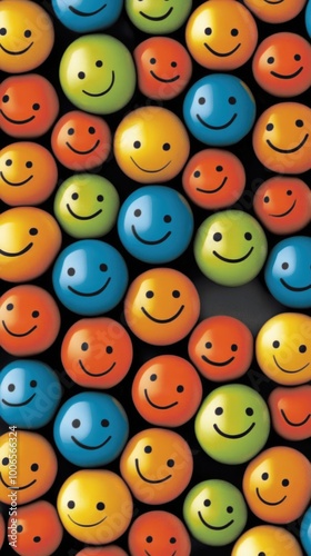 Vibrant glass spheres filled with smiling faces glow against a dark backdrop illuminated by mesmerizing neon reflections