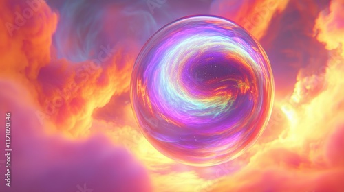 Vibrant Glowing Sphere in Pink Orange Clouds Digital Fantasy Art