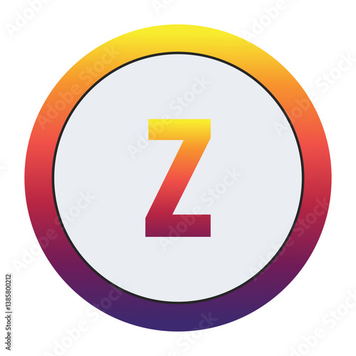 Vibrant Gradient : Modern, eye-catching Lowercase Letter z in yellow-red-purple gradient within a white circle and matching ring. Conveys innovation and dynamic branding. Ideal for tech or creative.