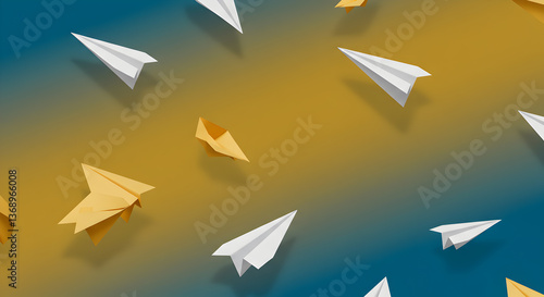 Vibrant Gradient Background with Paper Airplanes in Flight