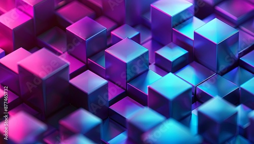 Vibrant Gradient Colorful Geometric 3D Cubes Background in Purple and Blue