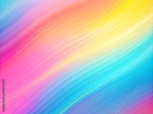 Vibrant graduated pastel hues of pink, blue, and yellow blend seamlessly in a soft, abstract background, perfect for