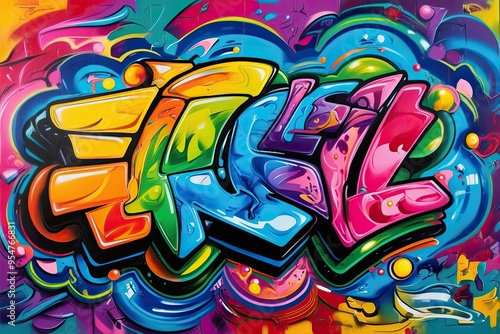 Vibrant Graffiti Art with Energetic Abstract 3D Design Background