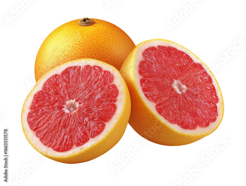 Vibrant Grapefruit with Sliced Segments on White Background for Culinary and Design Projects