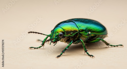 Vibrant Green Beetle Close Up - A detailed close-up of a vibrant green beetle, showcasing its iridescent shell and intricate details. Symbolizing nature, beauty, detail, life, and resilience