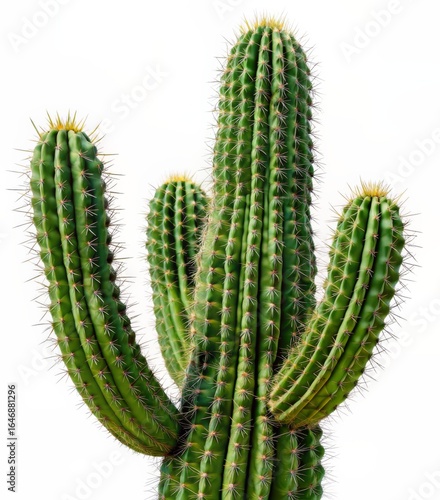 Vibrant Green Cactus Plant with Sharp Spines isolated on White Background