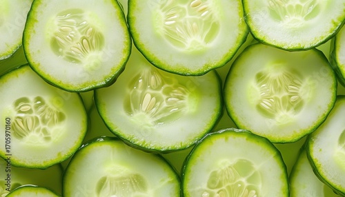 Vibrant Green Cucumber Slices In Intricate Pattern, Highlighting Crisp Texture And Natural Beauty In Close-Up Image