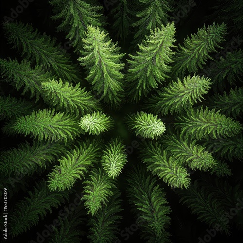 Vibrant Green Ferns on Dark Background Creating Natural Symmetry