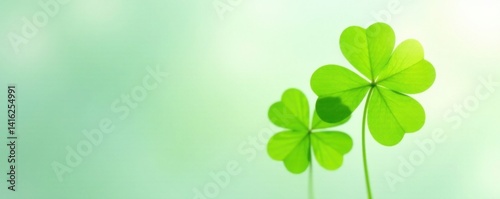 Vibrant green four-leafed clover against a soft white background, lush greens, flower