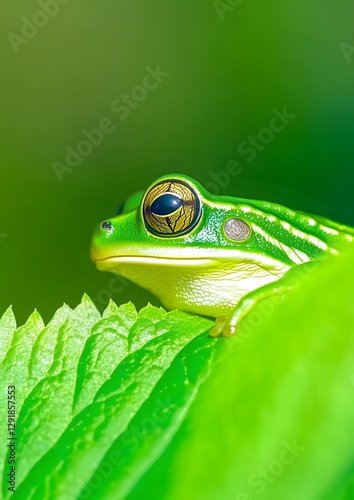 Vibrant Green Frog on a Leaf
