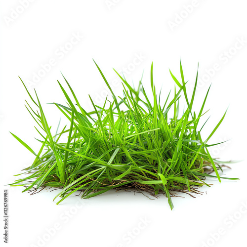 Vibrant green grass isolated on a white background, symbolizing nature and growth.