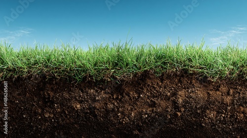 Vibrant Green Grass Soil Texture Surface under Blue Sky