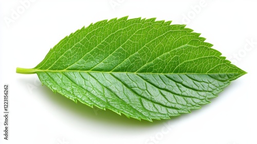 Vibrant Green Leaf Detailed Texture Single Leaf Nature Photography Botany Close Up Isolated on White