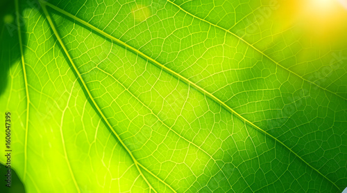 Vibrant Green Leaf Illuminated by Sunlight A Close-Up Nature Study