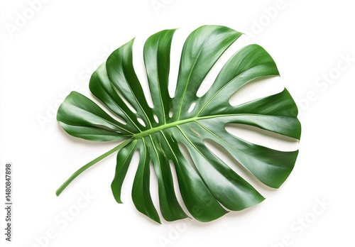 Vibrant green leaf with deep veining, laid flat on a pure white background. Detailed texture and shape are clearly visible