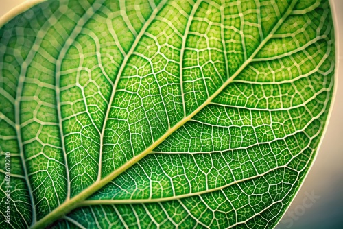 Vibrant green leaf with intricate veins and delicate edges takes center stage against a soft, neutral background, showcasing nature's intricate beauty and texture.