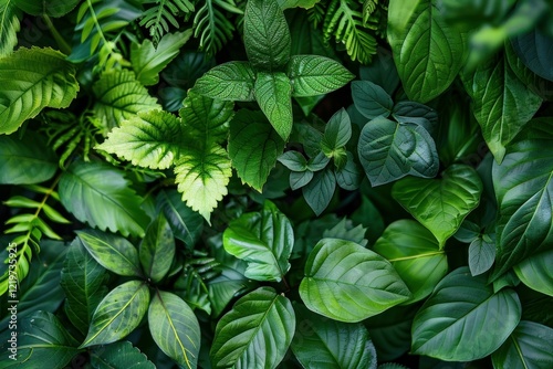 Vibrant green leaves are creating a lush natural background, perfect for representing tropical rainforest ecosystems
