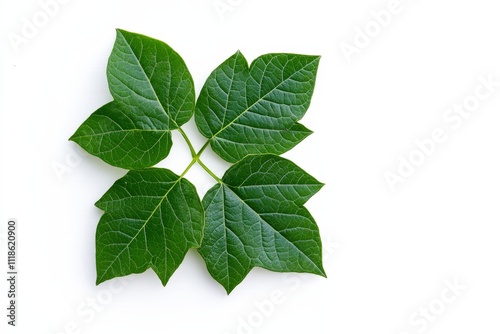 Vibrant Green Leaves Arrangement - A beautifully arranged cluster of vibrant green leaves showcasing natural textures and patterns on a clean white background.