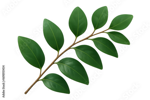 Vibrant green leaves growing on a branch, isolated on a transparent background, ready for compositing and design work