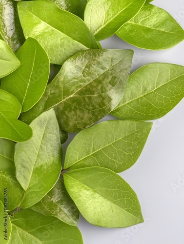 Vibrant green leaves softly arranged create a calming natural aesthetic. AI Generated