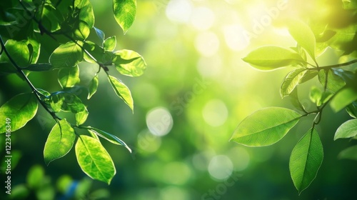 Vibrant Green Leaves Sunlight Nature Spring Fresh Lush Foliage Background Bright Sunlight Illuminates Beautiful Green Leaves Tranquil Peaceful Serene