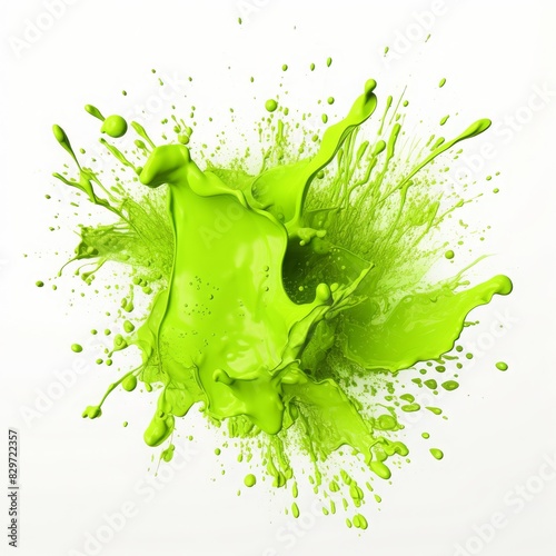 Vibrant green paint splash isolated on white background, perfect for creative design and abstract art projects.
