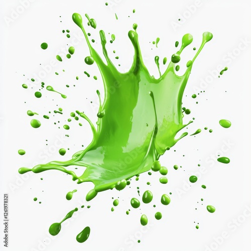 Vibrant Green Paint Splash with Dynamic Droplets Created Against a Clean White Background for Artistic Projects
