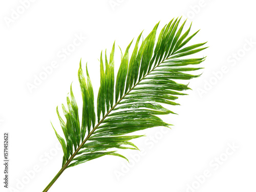 Vibrant green palm frond with white variegation against black leaf, Isolated, Transparent Png