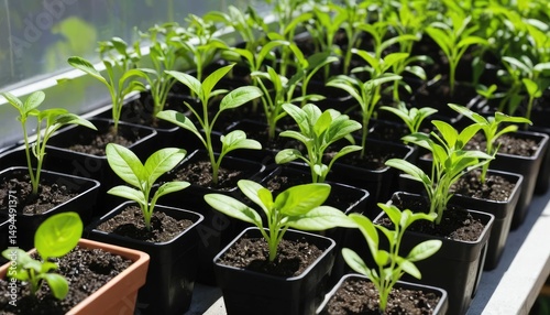 Vibrant Green Seedlings in Greenhouse