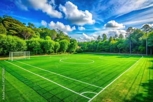 Vibrant green soccer field backdrop perfect for sports-themed projects, recreation activities, and nature-inspired designs, capturing the essence of outdoor vitality and energy.
