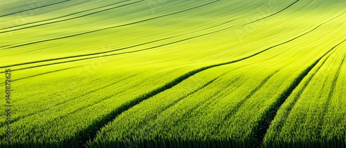Vibrant Green Wheat Field Rows, Agricultural Landscape
