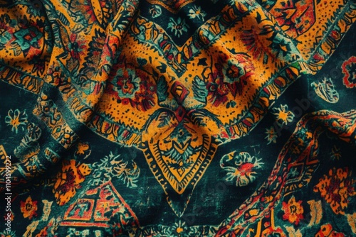 Vibrant hand-woven area rug with intricate patterns and rich colors.