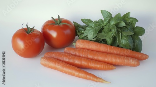 Vibrant Harvest: Fresh Tomatoes, Carrots, and Basil