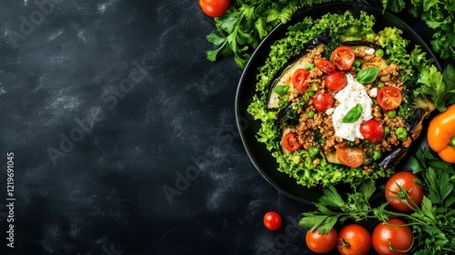 Vibrant healthy salad with fresh vegetables and herbs kitchen food photography clean aesthetic