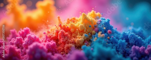 Vibrant holi powder cloud bursts in rainbow hues, isolated , color, happy, paint
