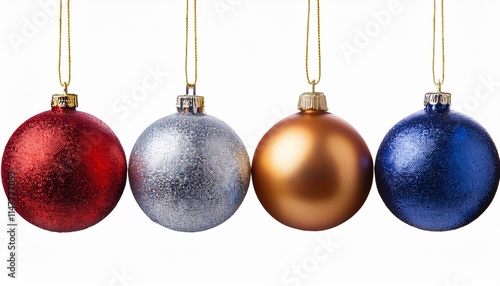 Vibrant Holiday Ornaments: Silver, Blue, Gold, and Red Christmas Balls on Transparent Canvas