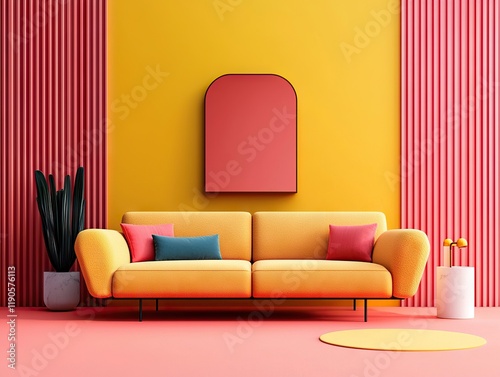 Vibrant home interior design modern living room bright colors creative environment contemporary viewpoint