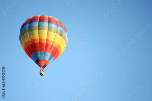 Vibrant Hot Air Balloon Soaring in Clear Blue Sky