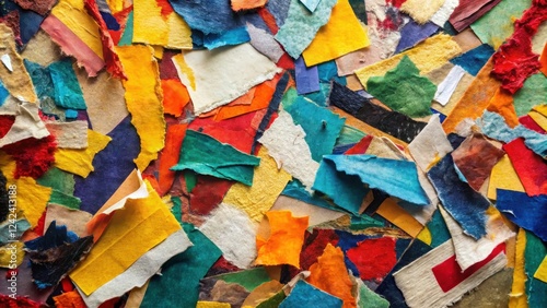 Vibrant Hues of Recycled Paper Scraps A Textured Collage of Colorful Fragments