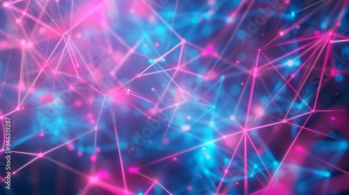 Vibrant hues provide the backdrop for a complex network of geometric interconnected lines, creating a dynamic and energetic atmosphere in the space.