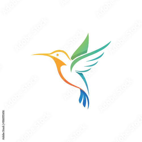 Vibrant Hummingbird Icon in Dynamic Flight with Smooth Gradient Colors